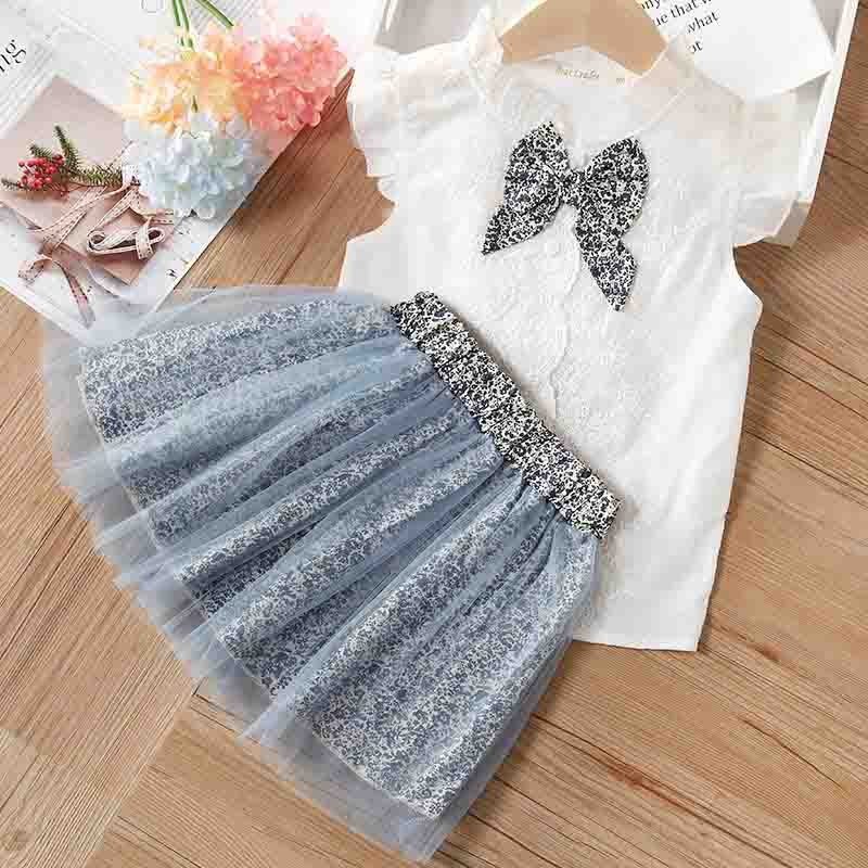 Girls Clothing Sets New Summer Sleeveless T-Shirt+Print Bow Skirt 2 Pcs for Kids Clothing Sets Baby Clothes Outfits
