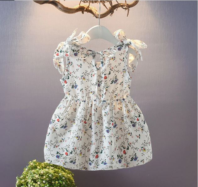 Toddler Baby Kids Girls dress Sleeveless Ribbons Bow Summer Dresses Floral print.